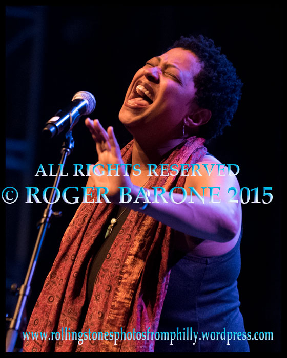 Grammy-winning singer, Lisa Fischer, performing with her band, Grand Baton, at the Keswick Theater in Glenside, Pa on Thursday evening. Lisa Fischer is also a longtime backup singer with the Rolling Stones. © Roger Barone 2015